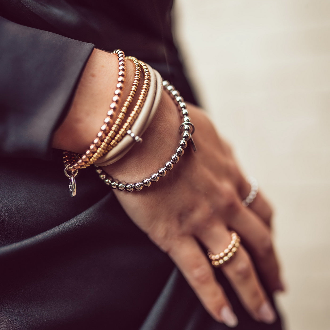 Für YDF-Schmuckstücke aus Gold verarbeiten wir wahlweise Gold 585 (14 Karat) oder Gold 750 (18 Karat). Auch bei den Legierungen bzw. Goldfarbtönen sind wir flexibel: Gelbgold, Roségold oder Weißgold.