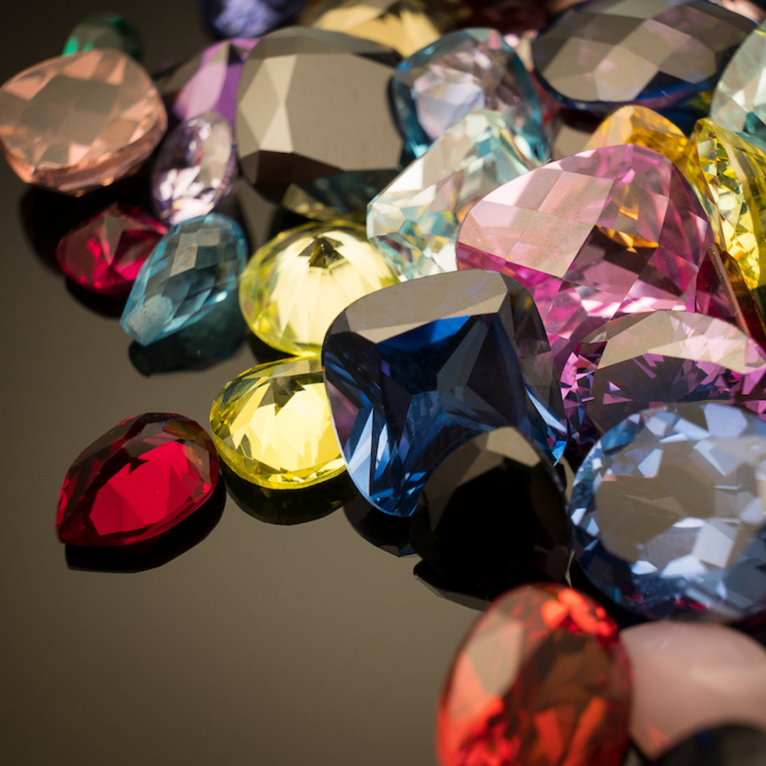 Edeltopas: Topas ist ein fluorhaltiges Aluminium-Silikat. In seiner reinen Form ist es farblos. Durch die farbgebenden Substanzen Eisen und Chrom entstehen die Farben gelb, rotbraun, hellblau, rot, violett und hellgrün.